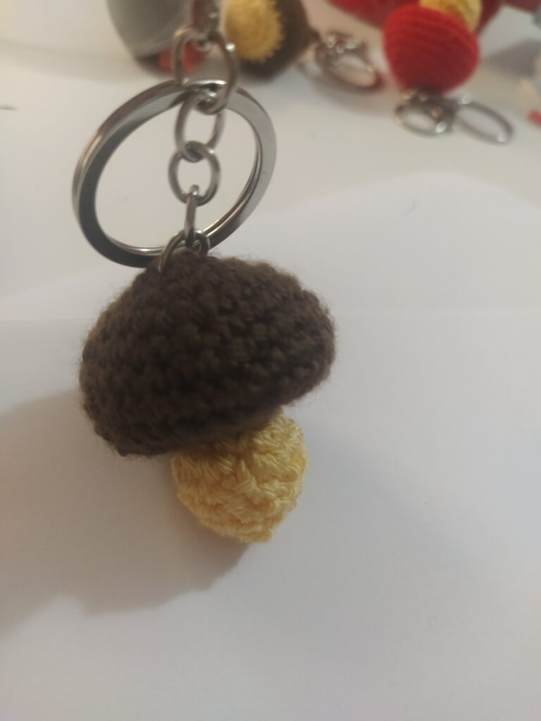 Uncinetto Fungo porcino🍄🟫 di Greta|Pubblicato 18 Novembre 2025 Portachiavi a forma di fungo porcino fatto all’uncinetto