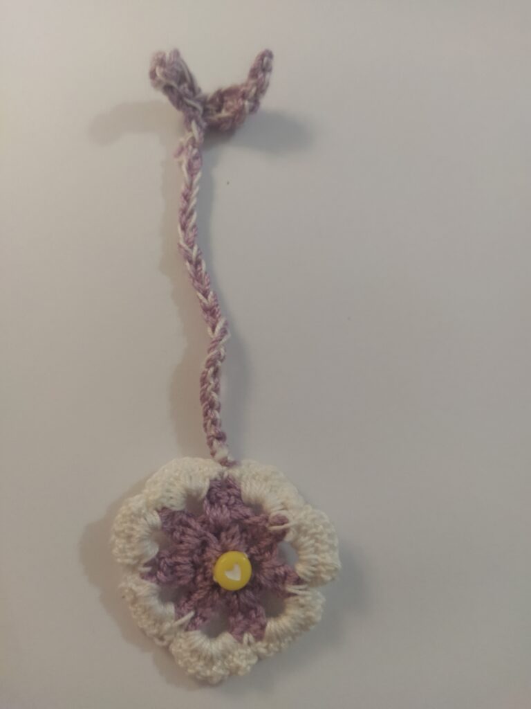 Uncinetto Segnalibro di Greta|Pubblicato 18 Novembre 2025 Segnalibro a forma di fiore fatto all’uncinetto